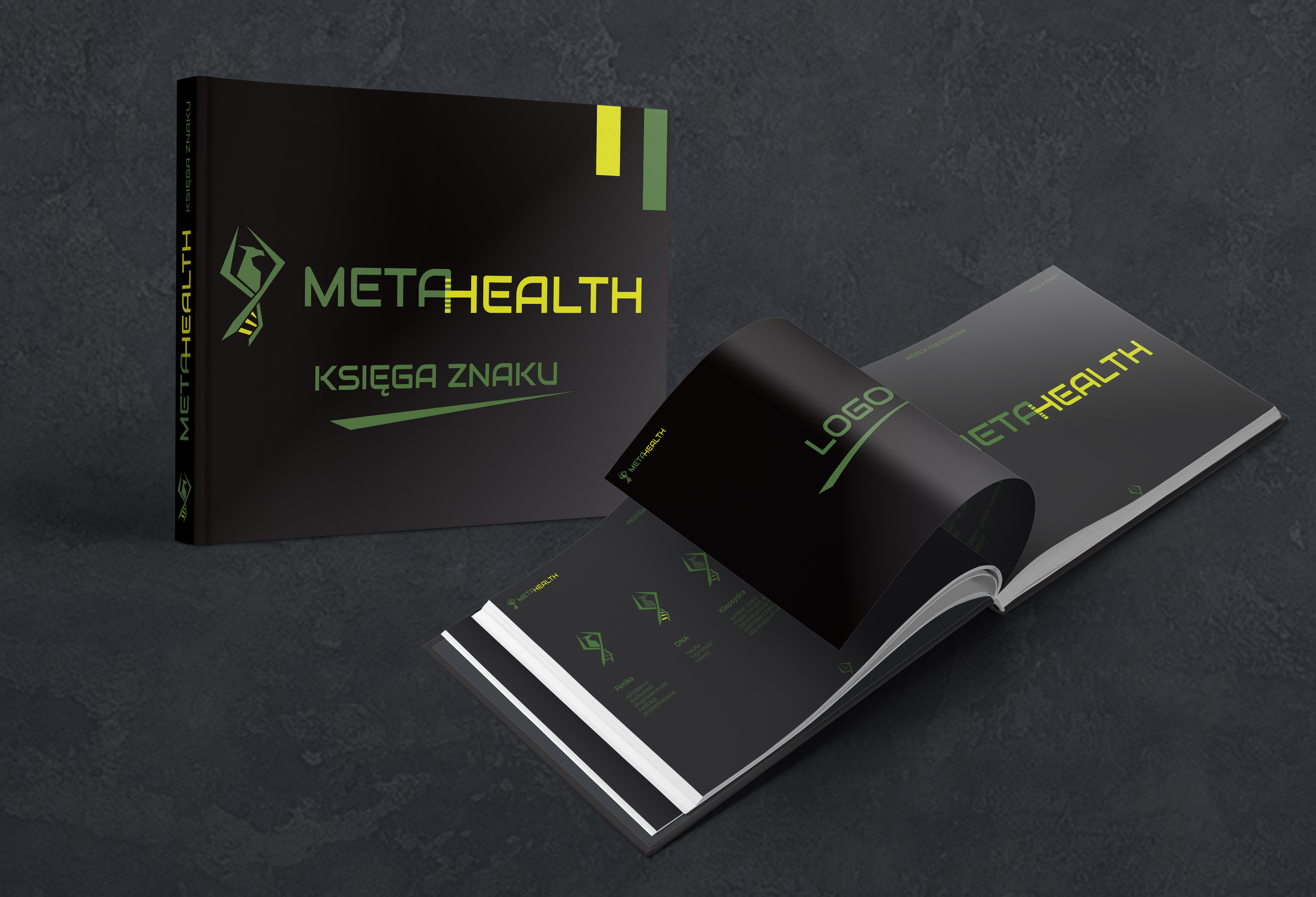 W typografii słowo Meta jest lekko wyżej niż Health, aby podkreślić jego znaczenie „ponad”. Dodatkowo litera ”A” z Meta przechodzi w „H” z Health, pokazując przemianę, którą klienci mają dzięki treningom z MetaHealth. Dodatkowo tworzą krzyż, kojarzący się z czerwonym krzyżem, czyli niesieniem pomocy, a także ze szpitalami/klinikami, czyli aspekt trenera medycznego.